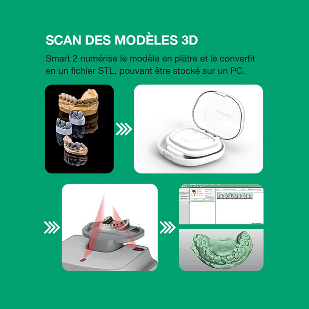 Le Smart 2 numérise les modèles en plâtre et les convertit en fichiers STL exploitables directement sur ordinateur. Une fonction idéale pour la planification numérique et les flux de travail CAD/CAM.