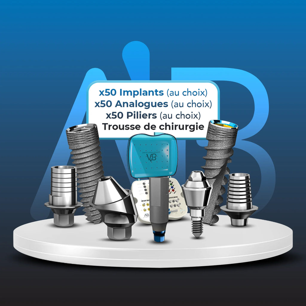 50 Implants AB Dental (au choix) avec Trousse de chirurgie