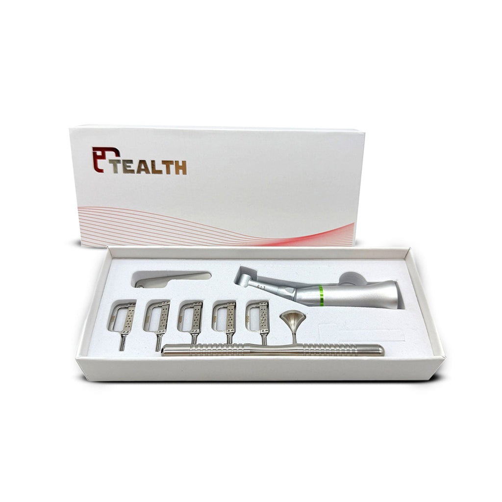 Le kit contre-angle TEALTH 4:1 IPR S-11 est un système complet et prêt à l’emploi destiné à la réduction interproximale (IPR) en orthodontie. Il comprend un contre-angle TEALTH 4:1 à mouvement alternatif, spécialement conçu pour l’utilisation de bandes métalliques IPR, offrant une efficacité élevée et une excellente précision clinique.